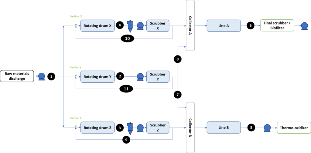 Una volta effettuato lo screening delle linee dei flussi, è quindi possibile razionalizzare l’aspirazione delle arie, tenendo in considerazione le caratteristiche chimico-fisiche dei flussi e delle necessità del processo produttivo, minimizzando consumi, sprechi e massimizzando l’efficacia dei sistemi a disposizione.